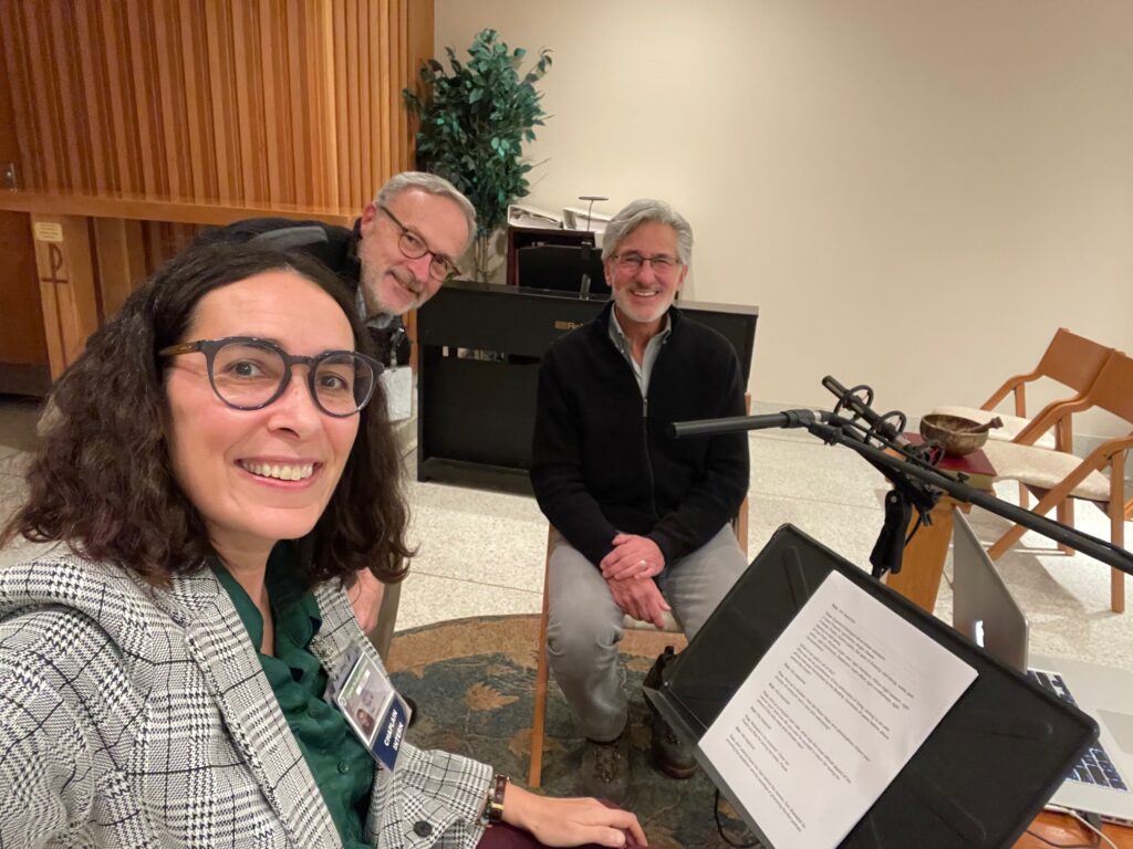 Pictured above: ME, Tom Zahradnik – Engineer & Producer Extraordinaire & Rob Bundy – Interviewee, a Theravada Buddhist Practitioner & Chaplain